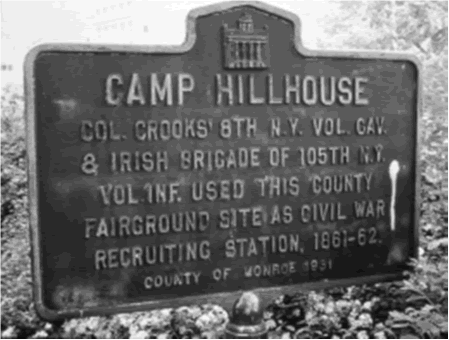 19. CAMP HILLHOUSE Camp Hillhouse was named after Thomas Hillhouse, New York State Adjutant General. It was located on the site of the Monroe County fairgrounds about 1/4 mile south of Mount Hope Cemetery. West Henrietta Road was its eastern boundary. The western boundary was Stanford Road. The United