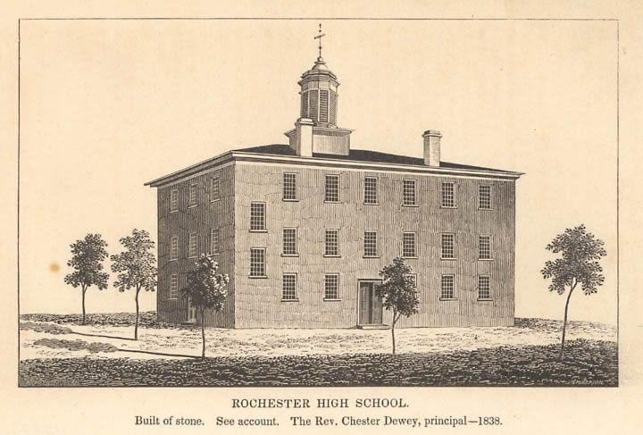 In 1827 this first Rochester high school was built on Chestnut Street.